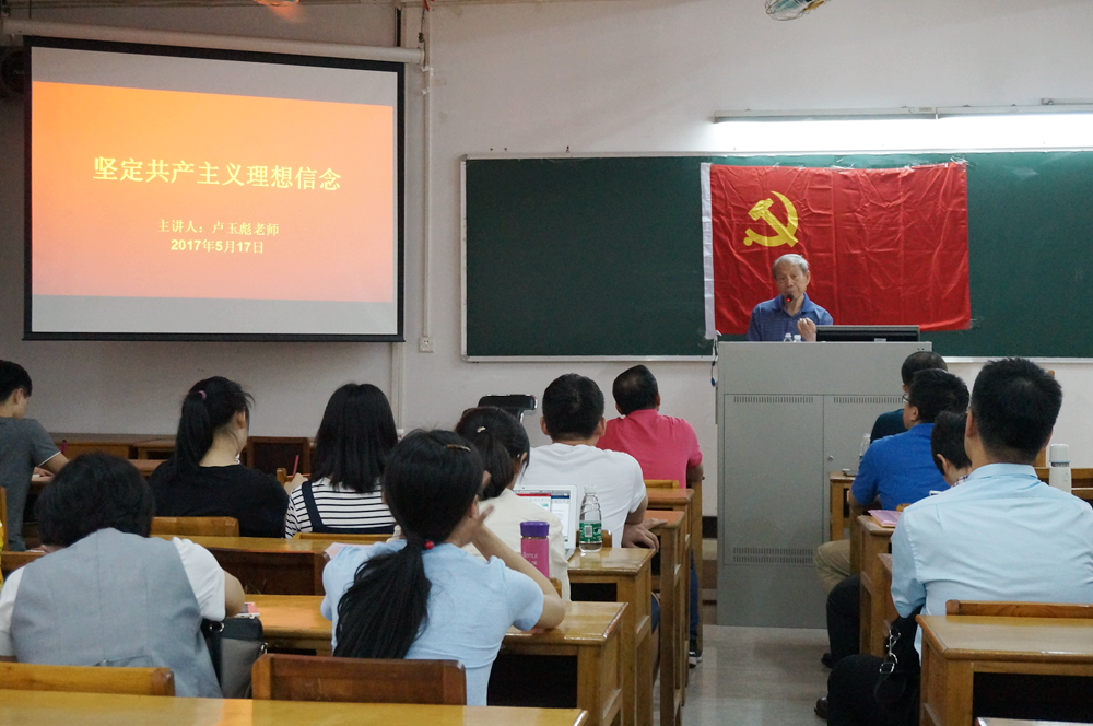 5月17日,在北校区C201教室,学校关工委委员卢玉彪副教授为williamhill威廉希尔官网院师生们上了一堂题为《坚定共产主义理想信念》的生动党课。williamhill威廉希尔官网院全体教工党员、学生党员和部分入党积极分子聆听了专题党课。