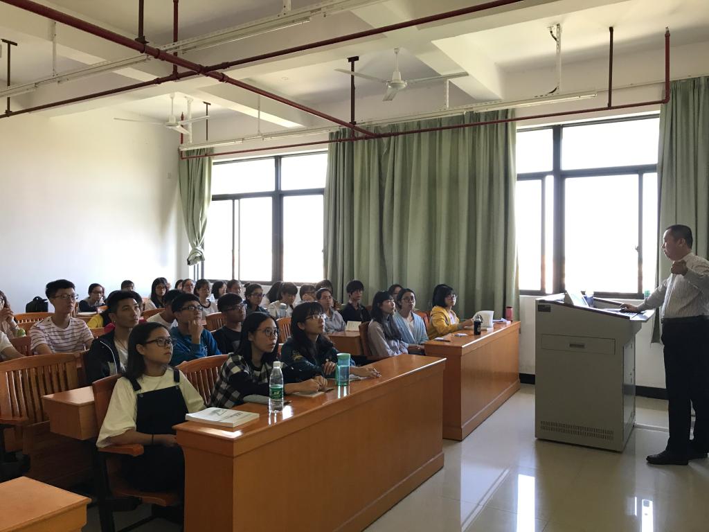 许建鑫书记首先从学习领会党的十九大会议的主要精神进行解读。他说,习近平总书记在党的十九大上的工作报告,高扬了中国特色社会主义伟大旗帜,彰显了社会主义现代化建设的主题思想,既高屋建瓴又接地气、内涵丰富贴近生活,让大家全面深刻了解国家的发展蓝图,振奋人心,深受启发和鼓舞。他重点从大会主题、十个方面的历史成就、两个重大判断、一个历史使命与“四个伟大”、一个重大思想:习近平新时代中国特色社会主义思想、新时代坚持和发展中国特色社会主义的14条基本方略、两个重要时期、两个阶段(“两步走”)、九个方面理论分析和政策指导等对党的十九大精神进行学习和解读;随后,他从怎么样看待中国崛起和中国模式、如何树立正确的历史观、国家观和民族观、为什么要坚持中国共产党的领导、到大学来的任务和规划等四个方面和同学们进行交流;他希望同学们认真学习党的十九大精神,把思想和行动统一到以习近平同志为核心的党中央上来,坚定理想信念,补足精神上的钙,学会做人、学会学习、学会生活,认真做好职业生涯规划,讲规矩明纪律守底线,认真参加学习和锻炼,力争学有所成,做一个懂使命、有信仰、敢担当、守诚信、常感恩的人。