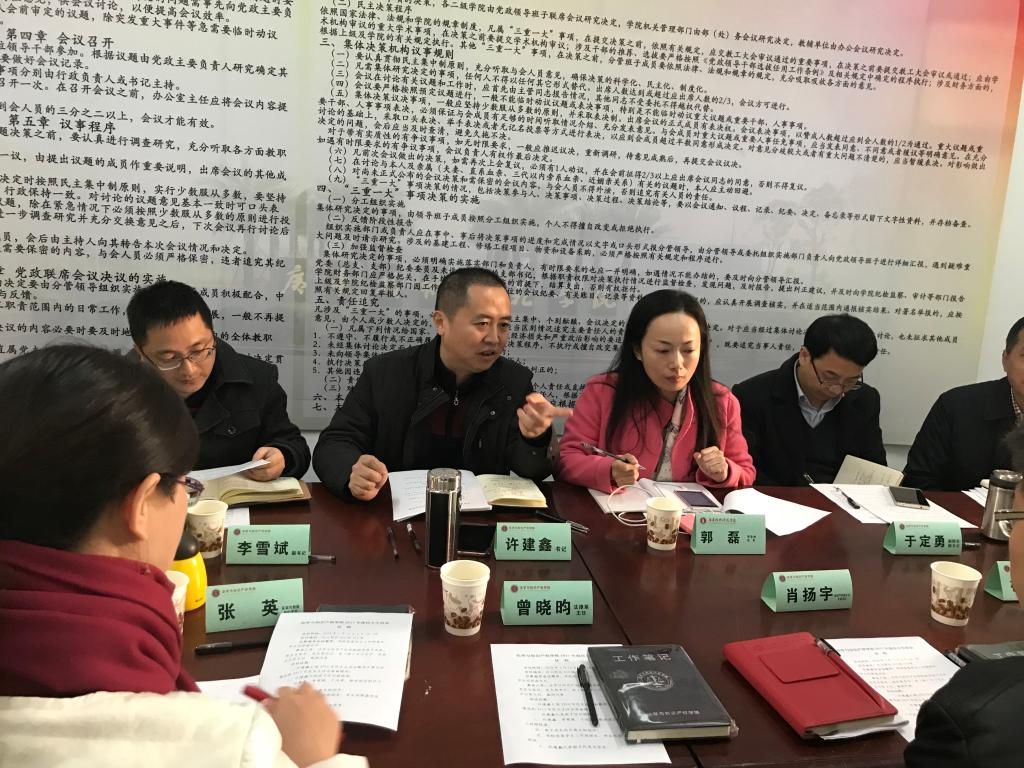 会上,许建鑫对民主生活会会前准备情况、征求意见情况以及学院2016年度民主生活会整改措施落实情况做了通报。许建鑫代表班子作了对照检查,深入查摆学院领导班子及其成员在思想政治建设,遵守政治纪律和政治规矩,遵守组织纪律、落实请示报告制度,对党和组织忠诚老实,干事创业、推进改革发展,纠正“四风”、加强作风建设,廉洁自律、遵守和落实八项规定等方面存在的主要问题,并深刻剖析了问题产生的根源,提出了努力方向和整改措施;班子成员中的党员领导干部许建鑫、李雪斌、于定勇、郭洪波分别紧扣2017年民主生活会主题,逐一进行对照检查和自我剖析,开展批评和自我批评,并就如何纠正改进提出了具体的整改措施。在相互批评环节,按照团结—批评—团结的原则,班子成员之间开展了相互批评,大家在批评与自我批评中态度中肯,坦诚相见,每位同志针对批评意见和建议做了虚心接受、即知即改表态,达到了增进理解、改进工作、奋进和谐的效果。