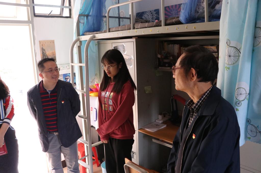 进入宿舍,他一一询问同学们的学习生活状况和党员联系人走宿舍的情况,当听到党员们能经常来宿舍帮助他们解答问题,他感到很欣慰。与此同时,他也嘱咐同学们要珍惜现在的良好环境和学习资源,认真学习专业知识和政治理论知识。