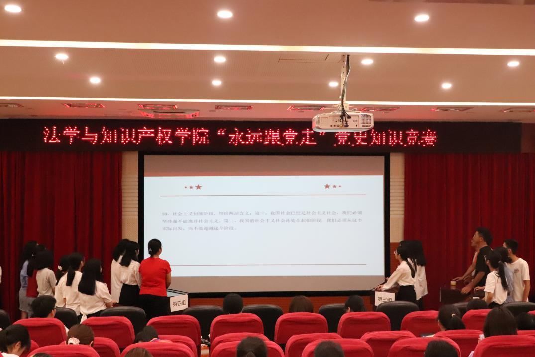 此次活动的上半场为“永远跟党走”党史知识竞赛,来自全院23个班级的各代表队通过层层筛选,最终角逐出来的7支队伍进入了决赛。决赛的七支队伍通过单人必答题、团队抢答题、红歌竞猜题等环节,通过激烈角逐,各代表队比分不相上下,比赛氛围逐渐热烈,台下同学不时响起阵阵掌声。