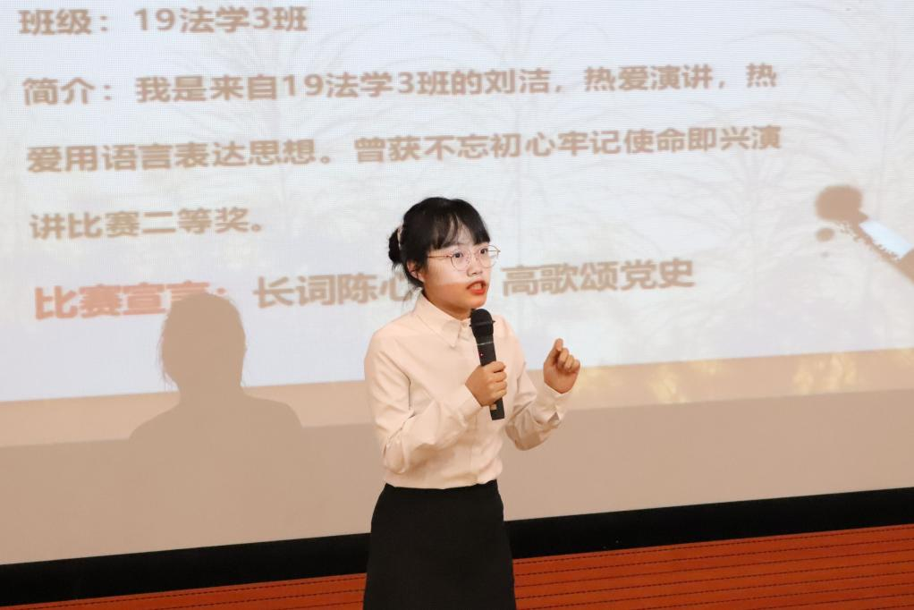 下半场为“永远跟党走”党史学习教育主题演讲比赛,演讲比赛决赛的八名同学结合党史学习教育内容:习近平《论中国共产党历史》《毛泽东、邓小平、江泽民、胡锦涛关于中国共产党历史论述摘编》《习近平新时代中国特色社会主义思想学习问答》《中国共产党简史》等指定学习材料,通过主题演讲对方式抒发出自己对祖国对中国共产党对热爱。