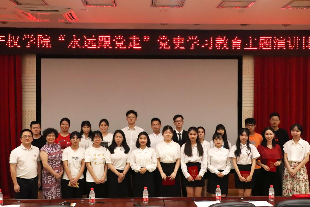 为深入推进党史学习教育, 5月24日,我院在白云校区三教报告厅举行“永远跟党走”党史知识竞赛与党史学习教育主题演讲比赛。学院党委副书记李雪斌,专职辅导员胡晨波、专职辅导员朱省志博士、辅导员伍瑛和学生代表共200多人参加活动。