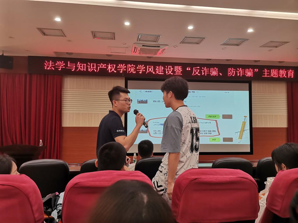 会上,谢晓俊警官为学生普及防电信诈骗知识。他以开学以来一些因为电信诈骗而损失钱财的现实案件为例,强调不要相信、不要参与网络上任何所谓的兼职招聘、刷单、网络平台交易等诈骗手段。对于电话诈骗,谢警官指出陌生人的来电如果涉及个人信息或者钱财,要提高警惕,核实对方身份,必要时须拨打报警电话;进行网上交易时要在正规的网络平台进行,切不可因投机取巧而损失个人财产。谢警官以轻松幽默的语调讲述案件,倡导大家提高自己的个人隐私保护意识,不贪图小利,维护好自己的财产安全,给同学们上了一场生动的“反诈骗、防诈骗”课。