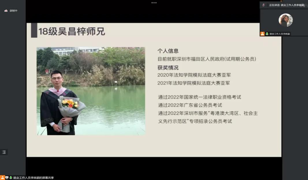 首先分享会就公务员考试作简要介绍,结合学院考公数据包括省考,国考的区别,各地域考生分布等数据表明了我院学生考公倾向明显,总结优秀毕业生的考公经验,助力成功上岸。
