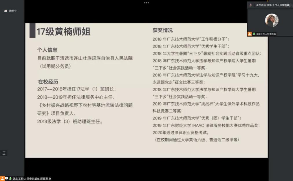 以下是往届优秀毕业生的分享,第一位带来分享的为17级黄楠,她总结了以下经验: