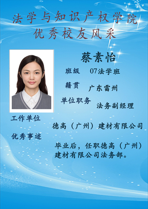 蔡素怡 07级法学班 现工作于德高(广州)建材有限公司