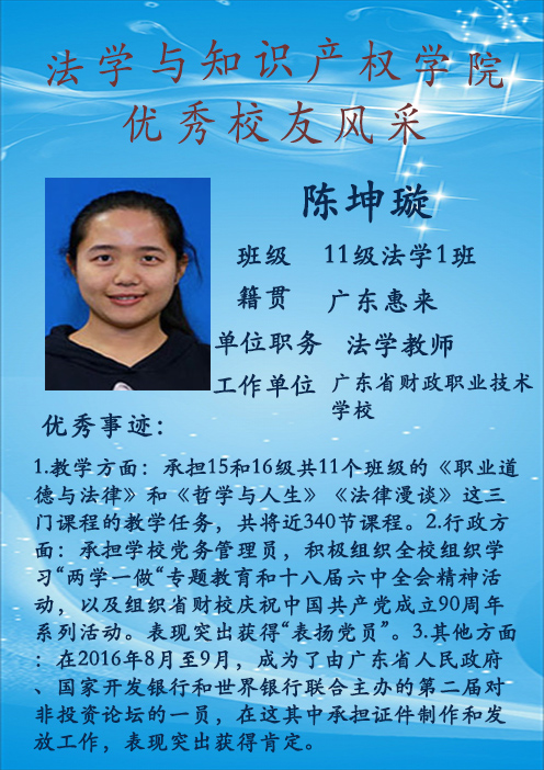 陈坤璇 11级法学1班 现工作于广东省财政职业技术学校