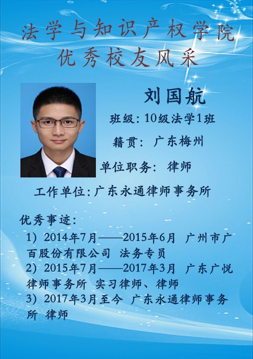 刘国航 10级法学1班 现工作于广东永通律师事务所