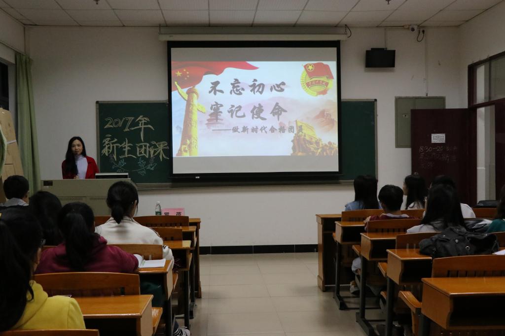最后罗蓓老师还结合亲身经历鼓励大家践行十二字方针:早规划,学为先,多参与,寻导师,号召大一小鲜肉们养成良好的学习与生活习惯,将国家发展与个人成长紧密结合,不忘初心、牢记使命,做一名优秀的共青团员!