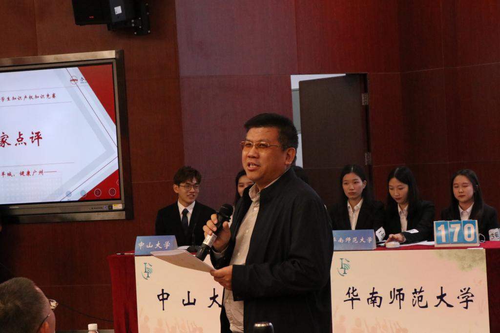 比赛开始前,孙燕青首先代表主办单位感谢指导单位广州市市场监督管理局的高度信任。他指出,广东技术师范大学历来高度重视与知识产权学科建设和人才培养,建设了一批如广东省知识产权大数据重点实验室、广州知识产权研究与服务中心等实力较强的科研平台,以及以广东技能型人才知识产权实训基地为基础的实践平台;同时,学校也注重知识产权人才培养,为推动粤港澳大湾区知识产权高质量发展输出专业人才。他强调,开展大学生知识产权知识竞赛是建设创新文化、知识产权文化的核心工作内容,更是广大学子一展知识产权专业能力和综合素养的绝佳机会,期待将来与相关知识产权单位、机构有更多元、更深入的合作。