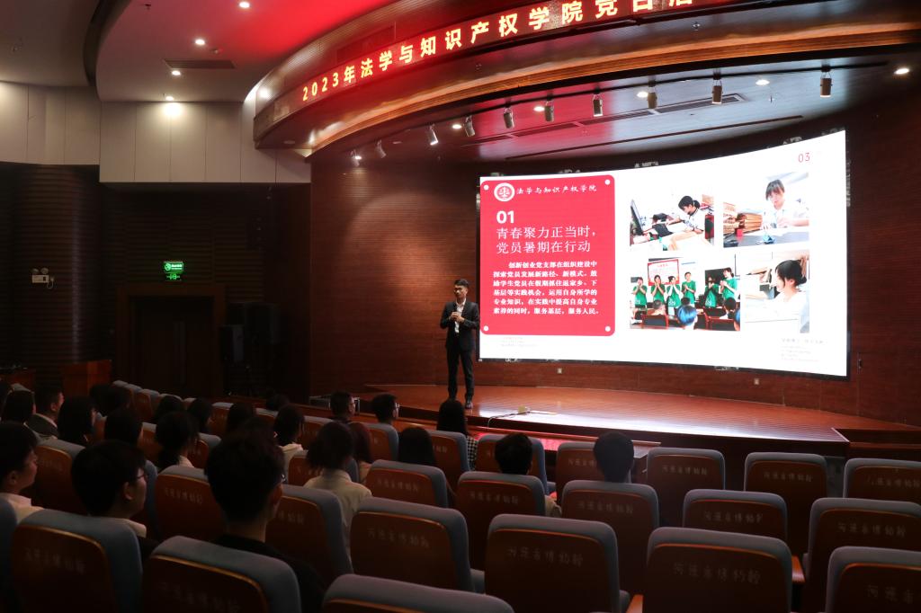 在博物馆一层的演播厅,学生第一创新创业党支部书记伍龙妙结合此次党日活动的主题和博物馆的实际进行了微党课的分享,通过“青春聚力正当时,党员暑期在行动”和样板支部的建设要求展开,希望同志们在学习“先民足迹、客家古邑、古城变迁、人文荟萃、革命风云”等展示的同时,深入了解河源的历史文化,保持对传统文化的兴趣和热爱,以及对革命先辈的敬仰和怀念之情。