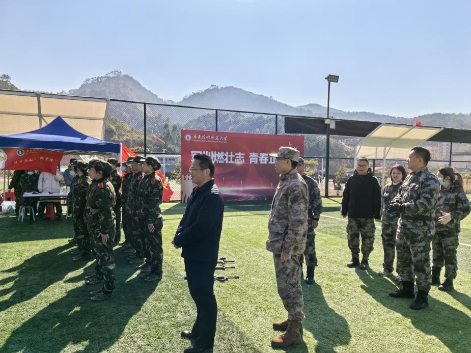 12月24日,学校党委副书记李向明在河源校区足球场亲切看望和慰问我院2023级军训学生。