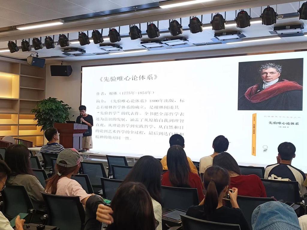 本次读书会共有六名同学先后进行分享,内容涉及众多领域,如有关《先验唯心体系》的哲学理论、论述《刑法学》上的行为无价值论同结果无价值论、有关政论的《毛泽东选集》等。同学们通过ppt分享自己的研读感受、陈述自己从书籍中学习到的知识。与会同学积极聆听,并对分享话题进行讨论互动。
