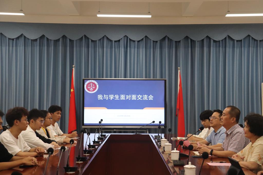 为进一步落实立德树人的根本任务,了解2024级新生入学以来的学习、生活情况,帮助他们更好适应大学生活,9月24日,我院在河源校区厚德楼418会议室召开2024级“我与学生面对面”交流会。学院党委书记许建鑫、党委副书记李雪斌、副处级辅导员胡晨波、河源校区辅导员王嘉晨及2024级各班级部分学生代表参与此次交流会。李雪斌主持会议。