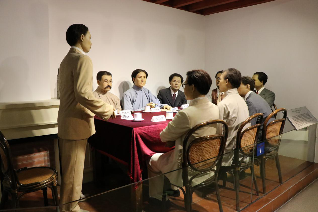 最让党员同志们印象深刻的是,在纪念馆中,用雕像还原了几位中共领导人当时围坐在一张方桌开会的情景。这几位中共代表人有陈独秀、李大钊、毛泽东、蔡和森、罗章龙、项英等,看着这些栩栩如生的领导人像,大家仿佛置身于1923年6月召开中共三大会议的现场,亲眼目睹了这一伟大的意义深远的历史情景。