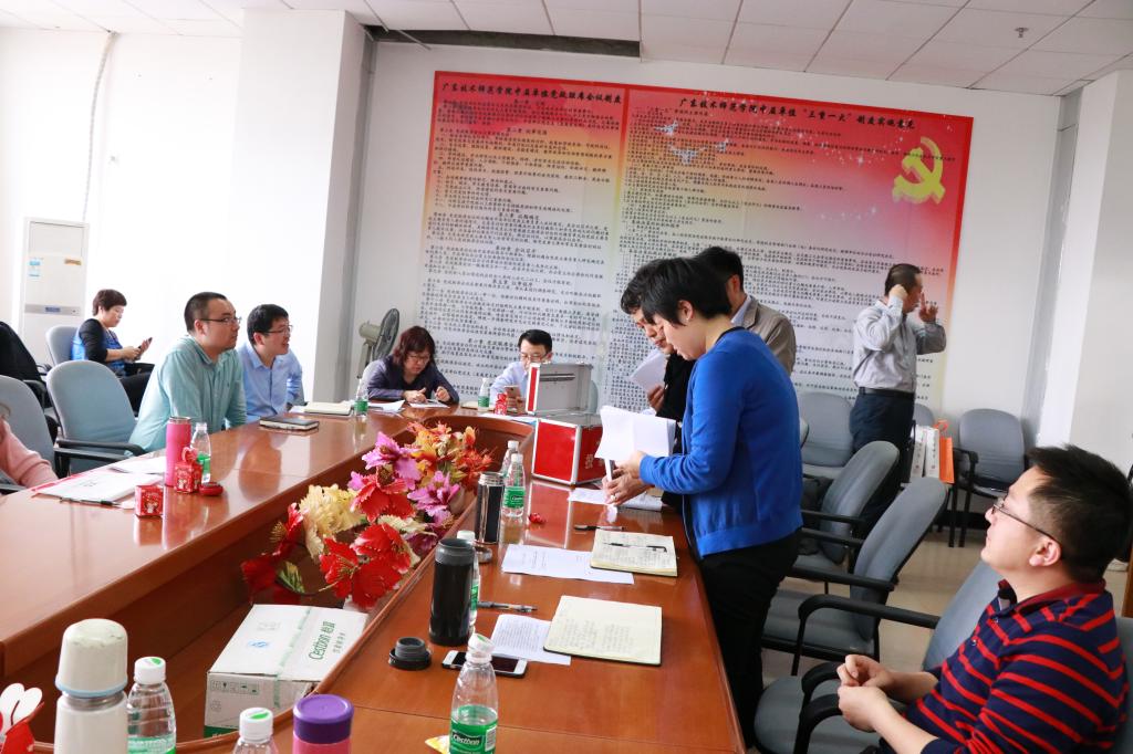 第二阶段,黄俊辉院长首先传达了学校考核通知精神和要求,重点阐述了考核内容,坚持客观公平、民主公正、注重实绩的原则,以岗位职责任务和工作标准为依据,以工作绩效为重点内容,以服务对象满意度为基础,充分发挥考核结果的激励约束作用。学院考核小组在个人述职、群众评议、主管领导意见的基础上,按实施办法综合评定被考核人员的年度考核结果。学院全体教职工就各自2017年度工作一一进行了现场述职,然后大家根据述职情况和学校考核要求开展测评。