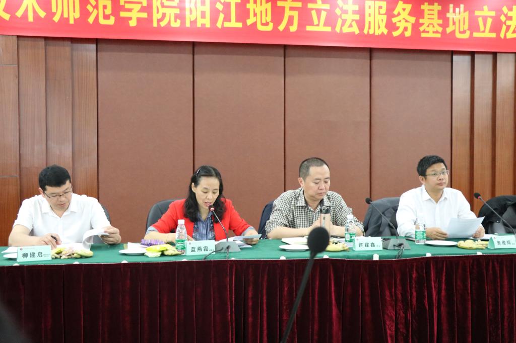 在阳江立法基地研讨会上,蓝燕霞、曾晓昀、胡信华、李小萍、柳建启等分别从基地一年来的工作、条例撰写、专家论证、立法论证、立法权限等角度对立法工作进行总结和交流研讨。