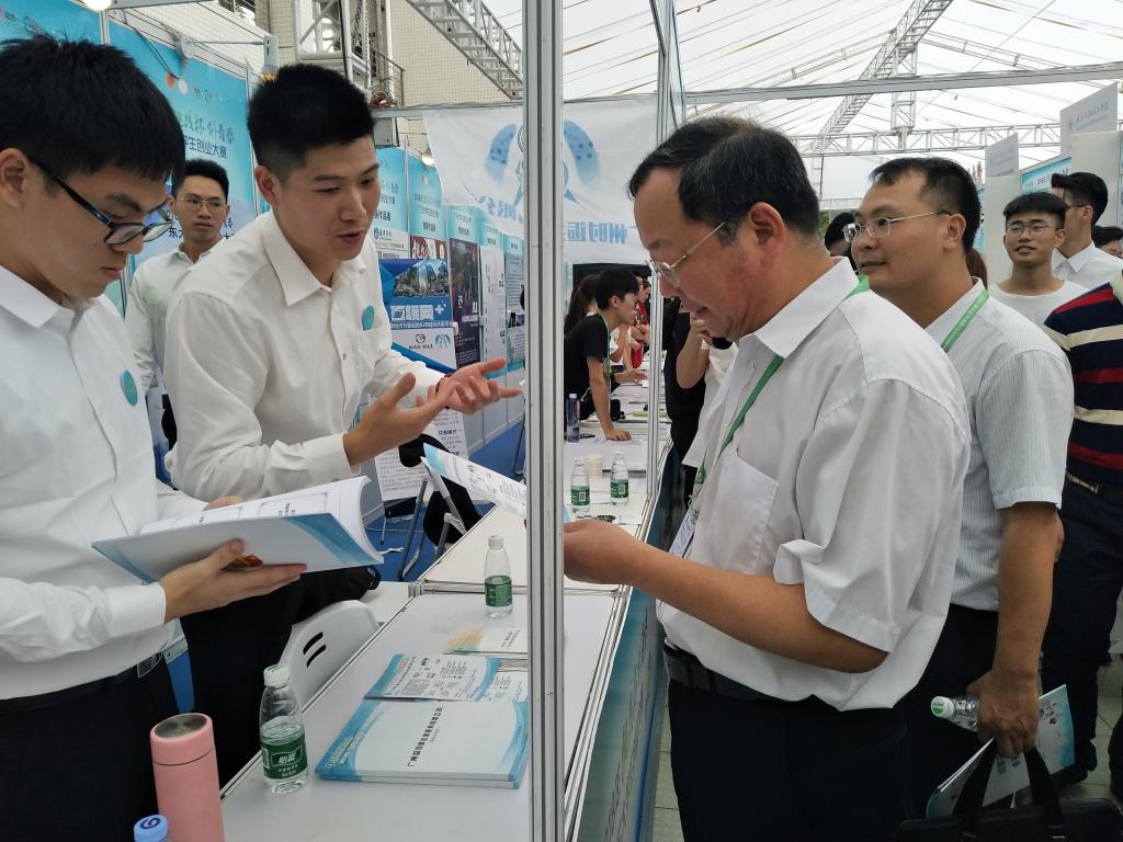此次作品展示开始时间为早上九点,益知蝉的作品展示队员在A-007展位上向各领导、专业老师和同学们展示自己的项目作品,吸引了大家的关注。学校领导也表示了对参赛队伍的高度重视,团委朱书记等学校领导前来观看作品展,并与参赛队员交流,为参赛队员鼓气,争取在比赛中得到好成绩。