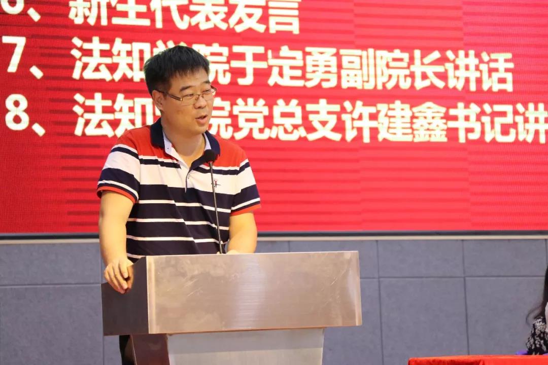 首先,他恭喜新生们选对了法学专业,并简单的介绍了法学悠久的历史。