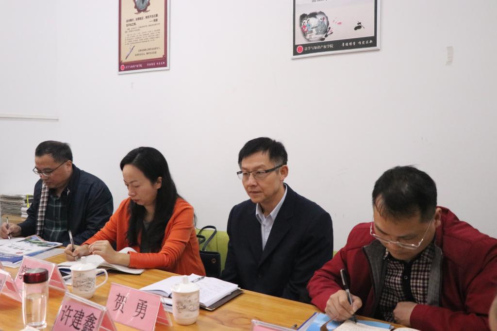 学院党总支书记许建鑫简要汇报了学院基本概况、学科专业情况、2018年教学科研党建情况和学生参加法律资格、研究生考试、创新创业、挑战杯获奖情况和存在的问题、建议,并简要就学院党建工作、党风廉政建设情况和今后发展思路进行汇报。