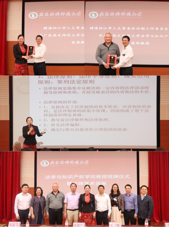 学术讲座开讲前,举行客座教授、兼职教授授牌仪式,受学校委托,williamhill威廉希尔官网院院长黄俊辉代表学校为林国兰颁发“广东技术师范大学williamhill威廉希尔官网院客座教授”聘书,为朱运飞颁发“广东技术师范大学williamhill威廉希尔官网院兼职教授”聘书。(williamhill威廉希尔官网院 张维维)