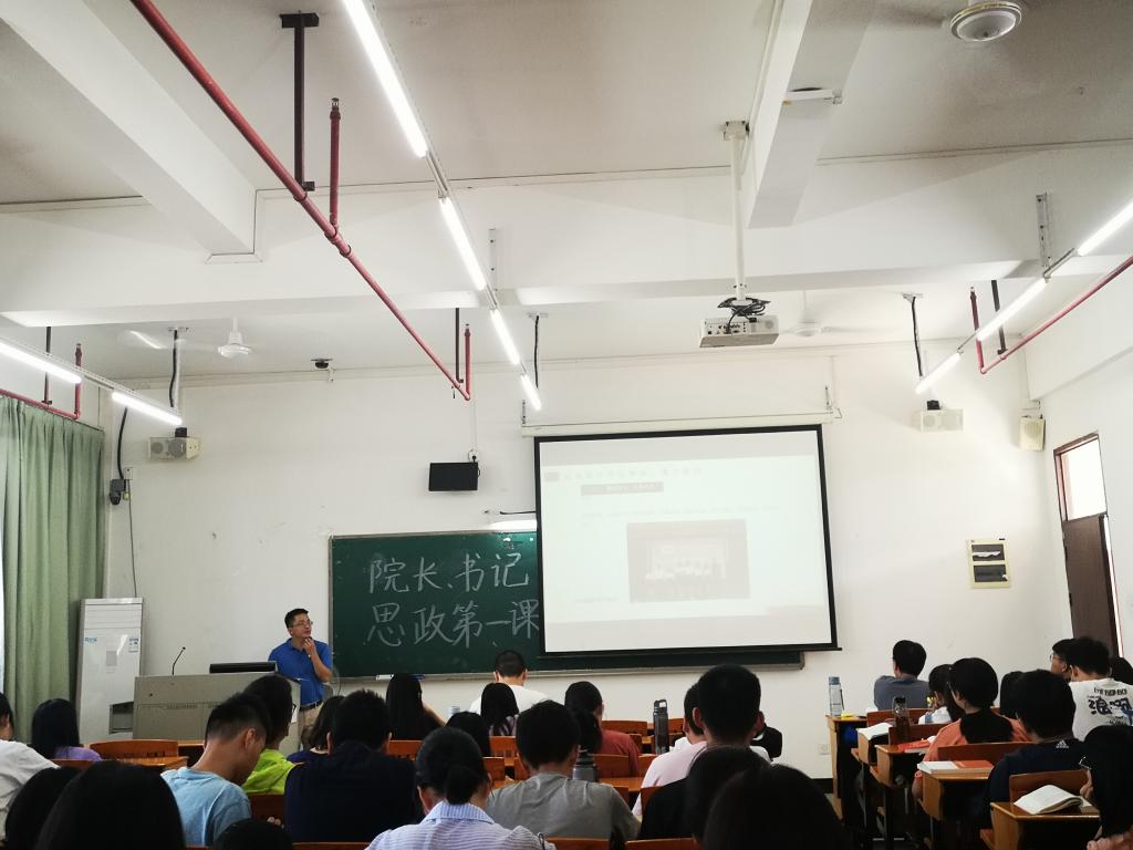 为深入贯彻落实全国、全省高校思想政治工作会议精神,进一步深入学习贯彻习近平新时代中国特色社会主义思想和党的十九大精神,学习贯彻习近平总书记视察广东重要讲话精神,并结合“不忘初心、牢记使命”主题教育精神,我院按照学校《关于做好2019年秋季学期学校党委书记、校长和各学院党委书记、院长上第一堂政治理论课工作的通知》精神,我院书记、院长、系部主任以及政工干部们精心备课,认真准备,为全院890余名同学开展了有温度有深度有力度的思政第一课,帮助学生提高政治站位,帮助学生树立正确的人生观、世界观、价值观。