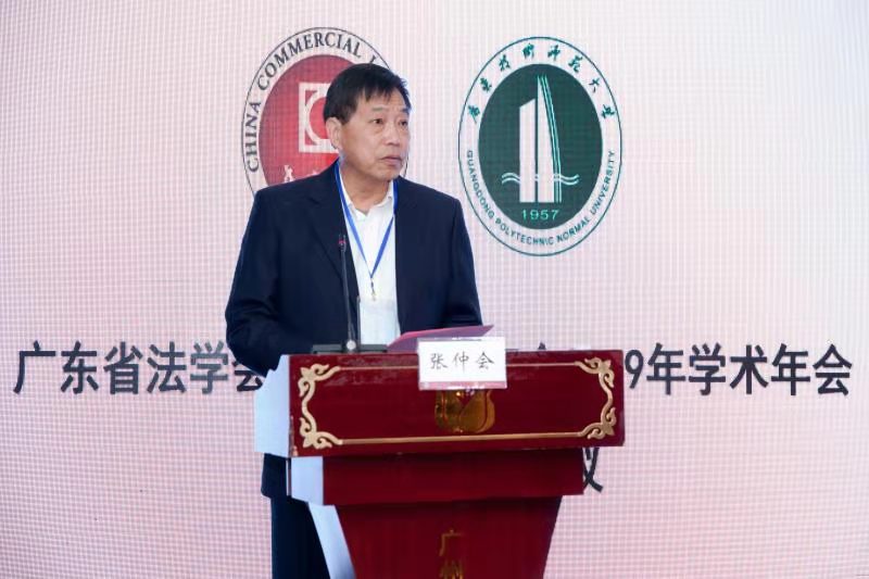12月7日,由广东省法学会经济法学研究会主办,我校williamhill威廉希尔官网院、广东华商律师事务所共同承办的广东省法学会经济法学研究会2019年学术年会暨理事会换届会议在广州举行。会议贯彻党的十九届四中全会精神,研究粤港澳大湾区经济法治建设与《经济法通则》制定。省法学会副会长张仲会、省法学会研究部主任郑桂琼、学校副校长潘志勉等领导出席了会议。来自省内外高等院校、科研机构、实务部门的专家学者和硕博研究生近200人参加会议。