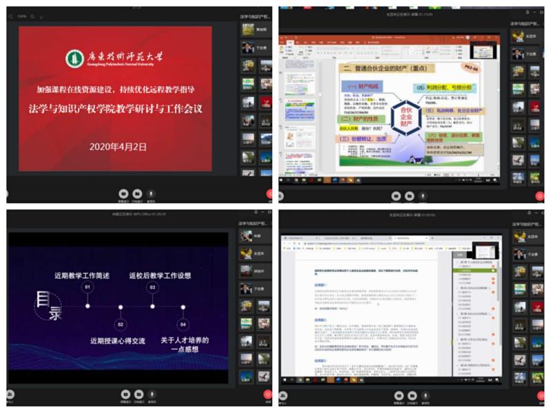 黄俊辉院长首先发言。他强调,疫情为推动远程线上教学与指导提供了一种很好的契机,希望大家化危为机,主动创新教学手段和方式。在线教学为以后河源校区专业教学与指导也提供了很好的补充和救急。目前线上教学已经进行了五周,大家要好好总结和提升,进一步完善课程建设,优化教学模式,提升教学质量。