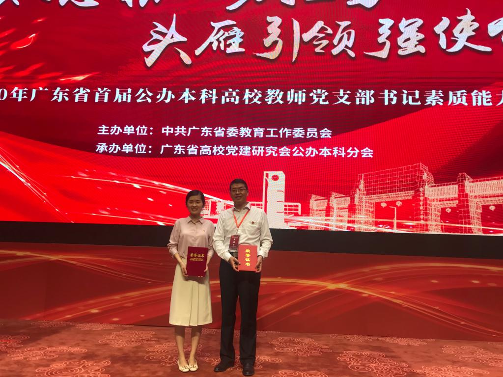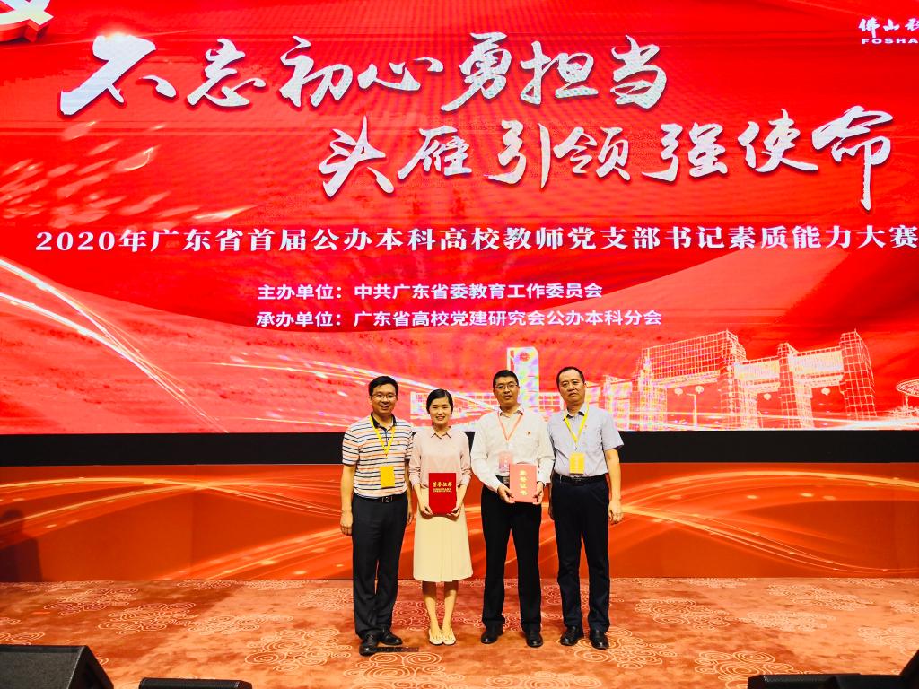 据悉,本次大赛由广东省委教育工委主办,省高校党建研究会本科分会、佛山科学技术学院承办,主要目的是扎实推进高校教师党支部书记“双带头人”培育工程深入落实,进一步加强教师党支部书记队伍建设,强化党支部战斗堡垒作用。赛事以“不忘初心勇担当、头雁引领强使命”为主题,来自全省39所公办本科高校的78位“双带头人”教师党支部书记参加了比赛。党委组织部专门成立备赛小组,全程指导,加强保障,学院党总支在理论知识测试、谈心谈话视频制作、微党课准备、创新案例凝练等方面所涉及的各个细节也认真参与准备,两位参赛老师全身心投入,精心准备,排除困难,经常利用节假日研究比赛细节,精益求精,做到教学科研工作和备赛两不误。
