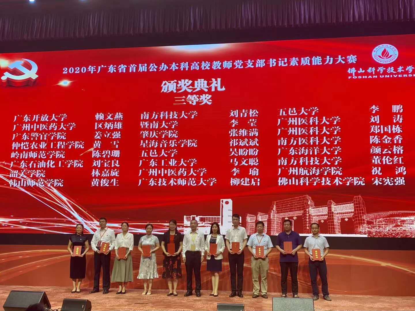 9月26日,广东省首届公办本科高校教师党支部书记素质能力大赛在佛山科学技术学院举办。我院法学科研团队党支部书记柳建启代表学校参加比赛并获得三等奖。