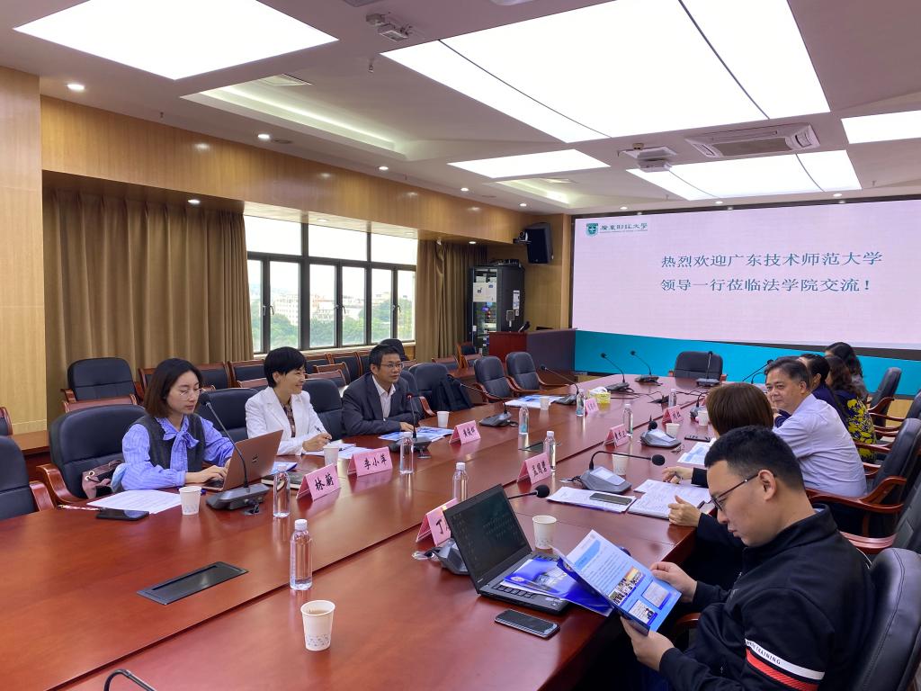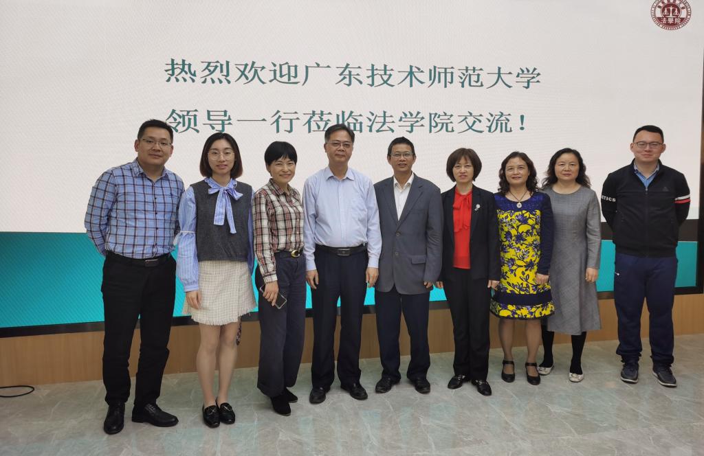 4月9日,学院院长黄俊辉带队,副院长李小萍、知识产权部主任林蔚、法律系副主任朱腾伟一行4人赴广东财经大学法学院学习调研。广东财经大学法学院党委书记袁东卫、副院长孟国碧、实验室主任刘红等参加了交流。