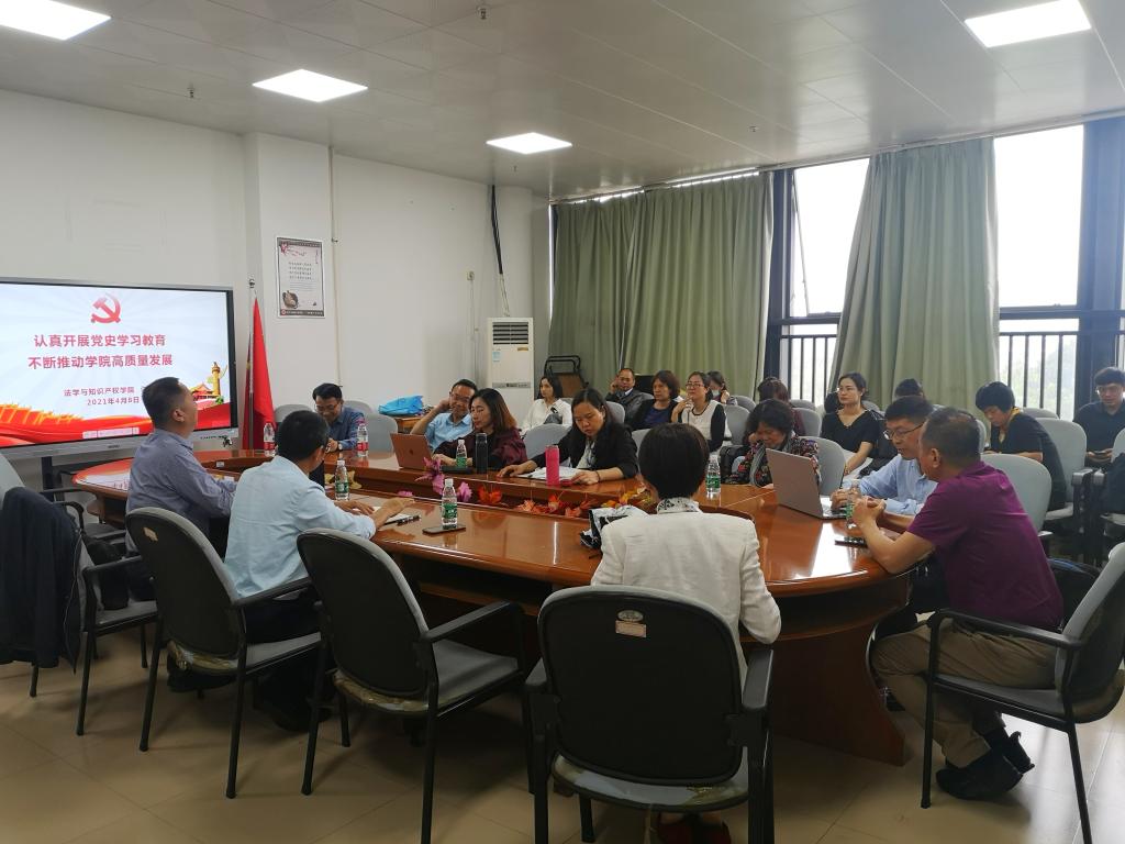 为不断推进党史学习教育走深走实,充分发挥学院党委引学、带学、促学作用,结合党史学习教育,4月8日,学院在白云校区一教317会议室召开全院教职工会议,党委书记许建鑫以《认真开展党史学习教育 不断推动学院高质量发展》为题,为全院教职工讲专题党课。