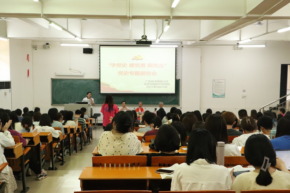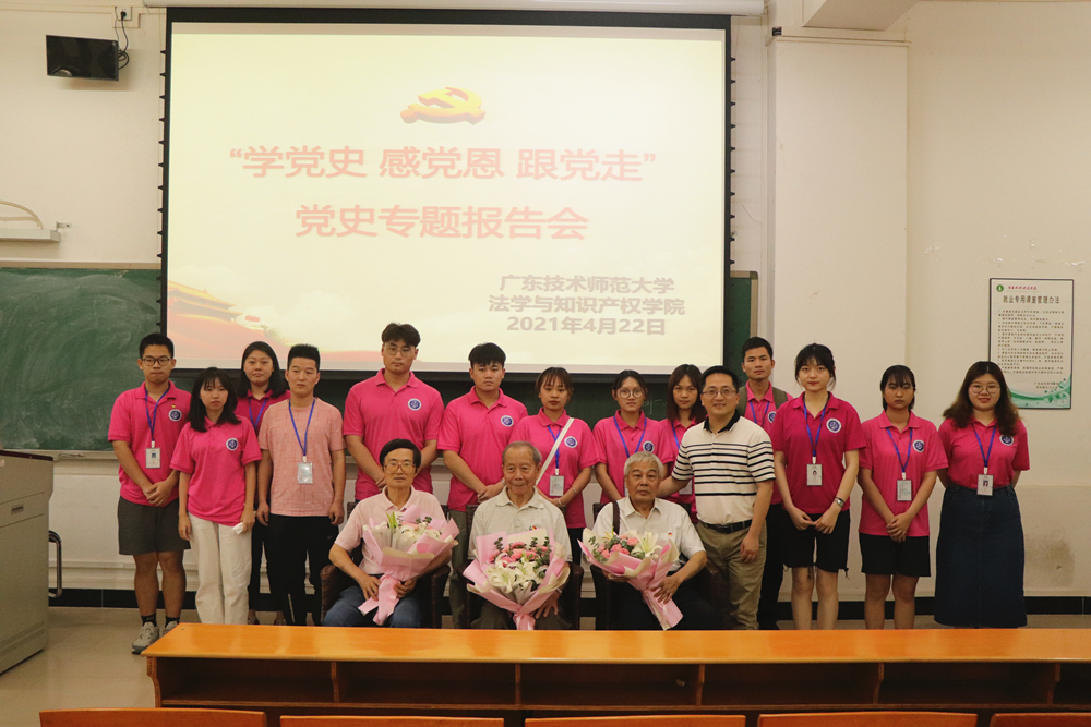为营造浓厚的党史学习教育氛围,推动党史学习教育往深里走、往心里走、往实里走,4月22日下午,我院在白云校区三教107举办“学党史、感党恩、跟党走”党史专题报告会。本次报告会特别邀请了关工委卢玉彪、张善荣、吴炳根三位老同志作专题报告,报告会由学院党委副书记李雪斌主持,220余名学生党员干部、学生代表参加活动。