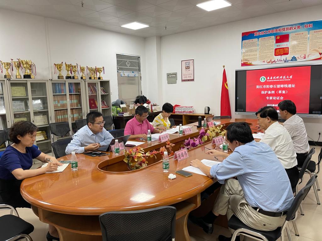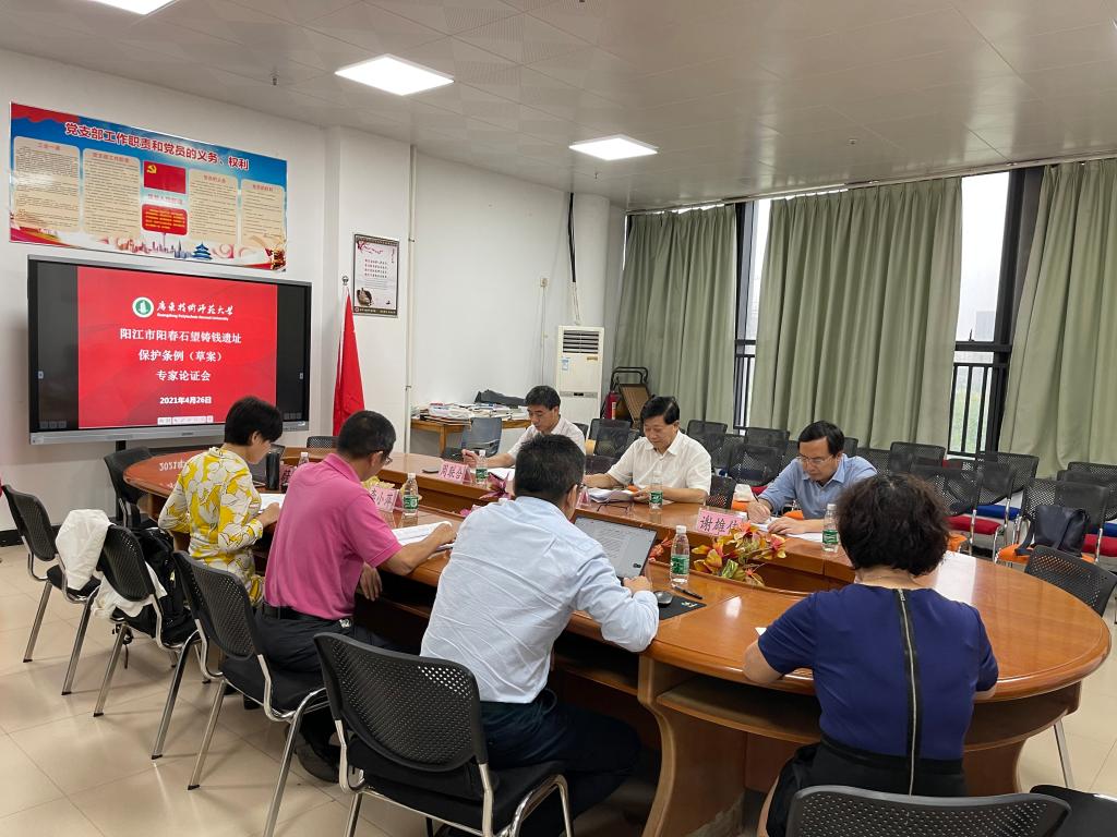 4月26日,我校阳江市地方立法研究评估与咨询服务基地在白云校区一教317学院会议室召开《阳江市阳春石望铸钱遗址保护条例》(草案)(以下简称“《条例》”)专家论证会,邀请了三位法学专家参与论证。论证会由学院院长黄俊辉主持,《条例》草案立法起草专家组主要成员李小萍副教授、沈理平副教授、朱腾伟博士、林蔚博士参加本次论证会。