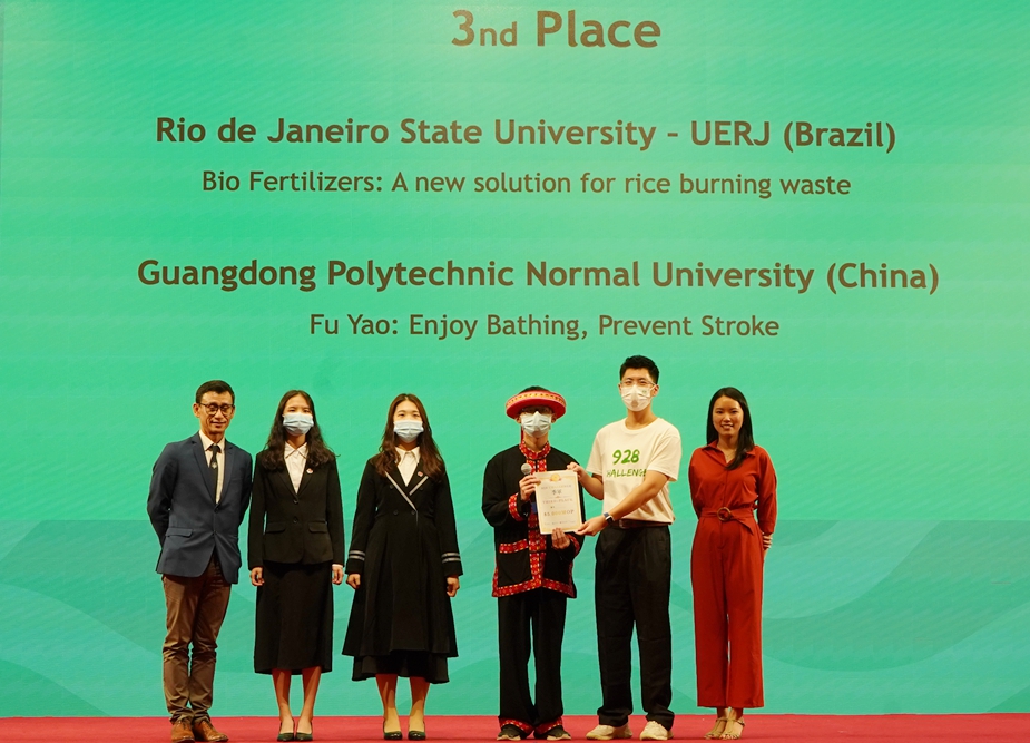 日前,由中国—葡语国家经贸合作论坛(澳门)、澳门城市大学、深圳大学和联合国大学驻澳门研究所联合主办的首届中国与葡语国家大学生“928创新创业挑战赛”在澳门圆满举办。最终葡萄牙波尔图大学团队获得第一名,几内亚比绍卢索福纳大学团队获得第二名,第三名则由我院葛俊杰同学担任队长,所带领的FuYao项目团队(学生:葛俊杰、黄加恩、李怡、赵海仪、梁培松、叶志琼,指导老师:张红强、陈晓桁)和巴西里约热内卢州立大学团队并列获得,该团队也为本次大赛唯一获奖的中国高校团队。