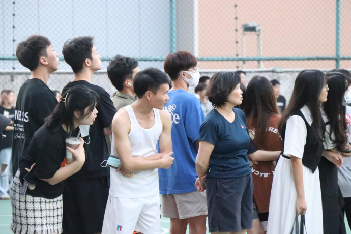 第二节比赛到第三节比赛的中场休息,辅导员们对我方球员们表示关心和给予厚望,前两场比赛中,辅导员们也是目不转睛地观看着我方球员们的比赛,给球员们呐喊助威。