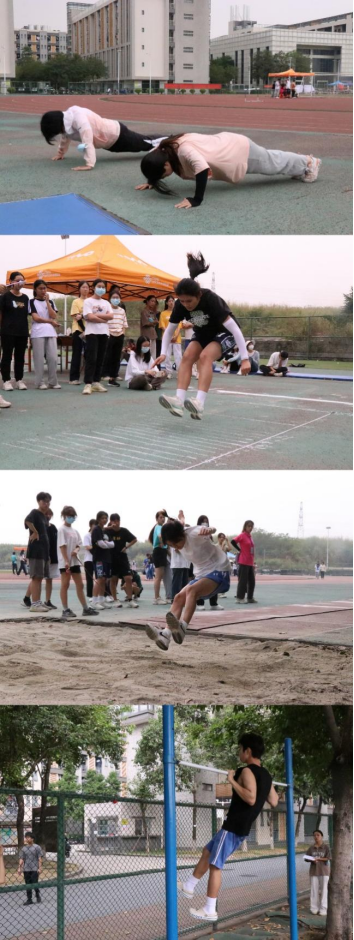 空中走步,展现风姿,助跑、跳跃、腾空、落地,少年青春之弧线,定格在半空中,滴落的汗水,是俯卧撑选手的坚持不懈,扬起的沙尘,是跳远选手的奋力一跃,他们身轻如燕、灵活矫健,引得掌声阵阵、惊叹连连。