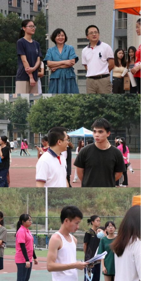 在院运会选拔赛之际,我院党委副书记李雪斌、胡晨波老师、辅导员伍龙妙等领导老师亲临比赛现场为运动员们加油鼓劲,并关心慰问了参赛队员们的准备训练、身体素质、心理状态以及参赛安排等情况,为运动员参赛中遇到或可能遇到的困难和问题进行了一一解答。