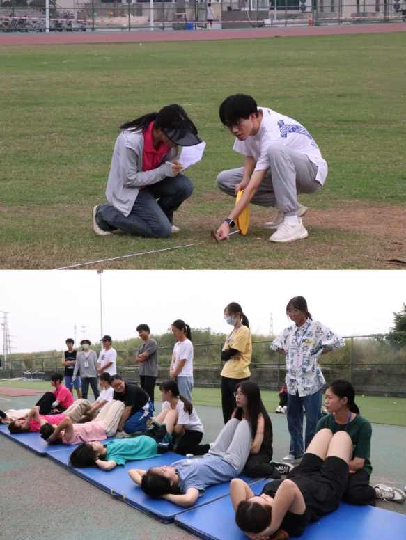 当然,值得我们敬佩的还有在背后无私付出的工作人员。粉色T恤穿梭在操场的各个角落,构成一道独特靓丽的风景线。赛场外的他们,辛勤工作、维护秩序,无微不至;送水,递毛巾,时刻眼观六路,耳听八方,不敢有丝毫懈怠,他们是运动员们的“定心丸”;助跑鼓劲,加油助威,随时准备伤痛药品,他们是运动员们身后最有力的支持和保障。
