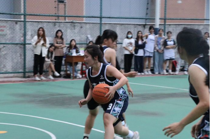 赛场上,双方拼抢很激烈,带球、运球、投篮等一系列动作潇洒、规范,引来围观观众们一阵阵地喝彩。