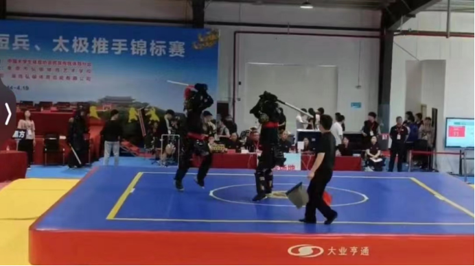 万物复苏的春天,正是踔厉奋发的时节。4月16日至18日,由中国大学生体育协会主办的第2届中国大学生长短兵、太极推手锦标赛在湖北省安陆市隆重举行。 我院20法2胡贵茗同学获得男子短兵72kg第五名。