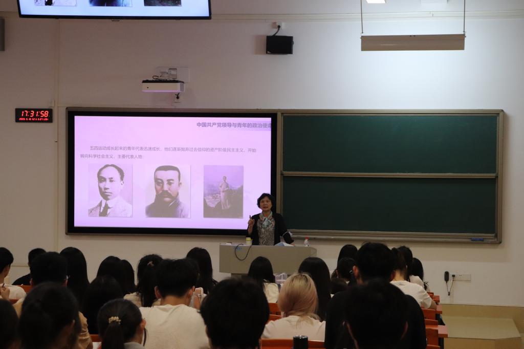 胡晨波老师指出中国共产党在青年运动中产生、不断发展壮大的,中国共产党高度重视青年学生工作、青年学生运动在党的领导下不断取得进步;回顾新民主主义革命、社会主义革命、建设和改革时期中国青年运动波澜壮阔的历史进程,我们可以清晰看到中国共产党始终是中国青年运动的坚强领导核心。她强调“跟党走”是新时代对中国青年的基本要求,“跟党走”是青年的正确选择、是中国共产党对中国青年的期待、是新时代中国特色社会主义事业发展的内在要求。青年大学生应深刻把握政治使命感内涵、坚决做到“两个维护”,充分认识党的历史和功绩、自觉增强对党的认同,明确新时代的新要求新期待、自觉提升政治站位,努力在学习实践中成才,敢于担当时代重任。