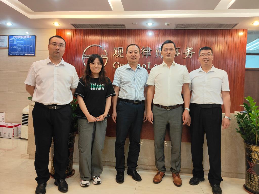 为推动产学研协同育人,拓宽法学专业学生的实习就业渠道,6月2日,我院党委书记许建鑫、法学专业负责人曾晓昀、立法研究中心主任柳建启一行前往北京观韬中茂律师事务所广州分所进行拓岗交流,得到广州分所主任刘文洪的热情接待。
