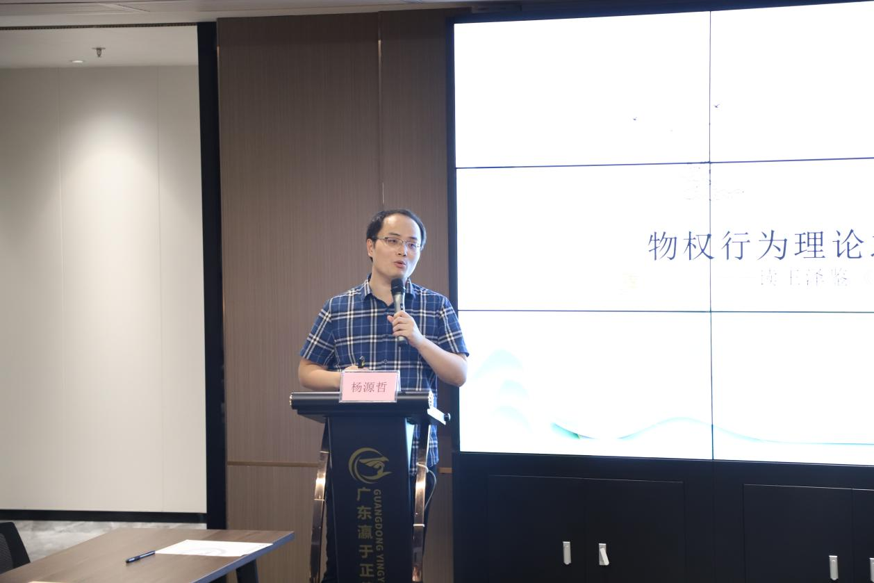 杨源哲博士分享了法学学科经典书目《民法学说与判例研究》,他首先介绍了该书的优势是针对现实案例所编排,可以帮助法学专业同学更快进行法律问题的定位,解决法律实务中的困惑。随后,他从物权行为理论之检讨切入,系统的介绍了物权行为的概念、各种情形及理论阐释等内容,并以“不当得利”的现实案例与同学们进行互动交流。同学们积极发表自己对问题的见解,气氛热烈。瀛于正律师事务所黄文基律师则从律师实务角度出发畅谈了日常处理民法案件的情况和感受,引导同学们要把理论和实践学习相结合。