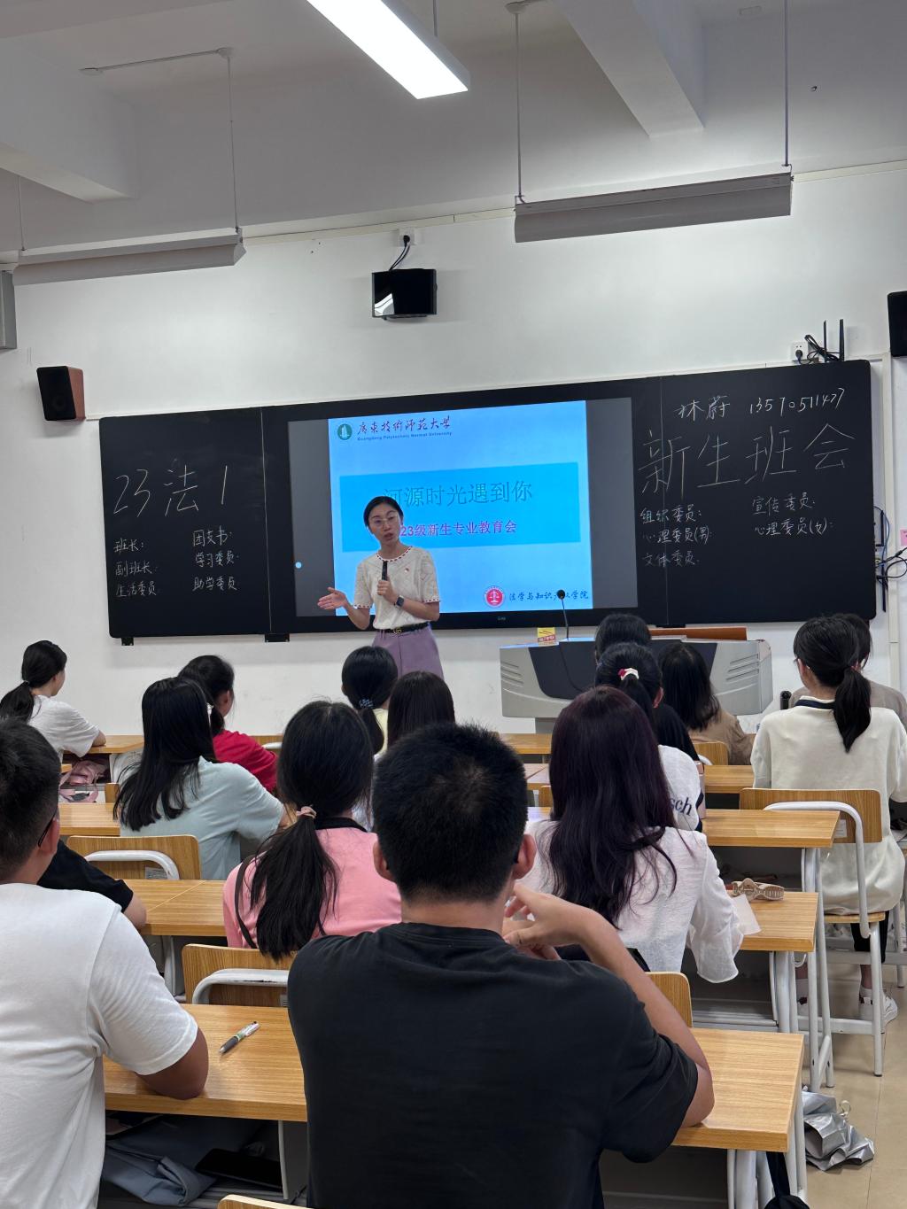 9月10日—26日,法学专业负责人曾晓昀,学院辅导员王嘉晨、蓝雅婧,法律系主任万娟娟分别开展了专业介绍、心理健康教育、安全教育和校纪校规教育以及新生专业教育专题讲座,让新生了解了专业发展前沿、专业学习要求、专业发展前景、课程体系、培养方案、师资力量、就业机会、校园盗窃、电信诈骗等方面的知识,并对大一结束后专业分流情况作了进一步阐释,解答了同学们在学习方法、考公考研、法律考试等方面的疑问。通过系列教育讲座,同学们对于专业学习和职业规划有了更加清晰的认识和方向,对于学习生活期间的安全意识和纪律意识有了进一步的提高。