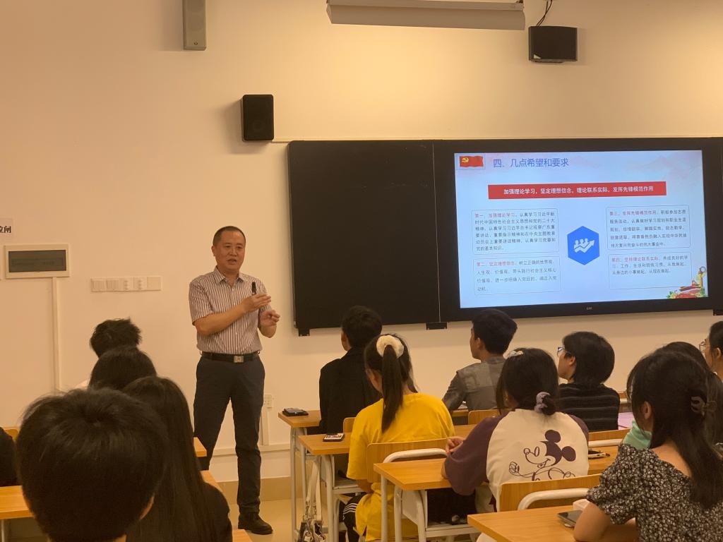 9月25日,学院党委书记许建鑫为2023级新生全体班委作题为《认真学习习近平新时代中国特色社会主义思想》的“思政第一课”。他带领同学们认真学习习近平新时代中国特色社会主义思想,深刻领悟“两个确立”的决定性意义,增强“四个意识”、坚定“四个自信”、做到“两个维护”,铸牢永远听党话、跟党走的思想根基,引导同学们持续增强对党和国家未来发展的信念信心,牢牢把握团结奋斗的时代要求,不断厚植家国情怀,涵养进取品格,励志担当大任,主动把个人发展融入民族复兴的伟业之中。接着,在与学生的交流互动中,许建鑫和党委副书记李雪斌认真听取同学们开学后的学习、工作和生活等方面情况,对同学提出的问题给予一一回应,并勉励同学们要尽快转变身份,适应学校学习生活环境,了解和认识学科专业,加强职业生涯规划,学会做人做事和学会生活,坚定信心,脚踏实地,全面成长。