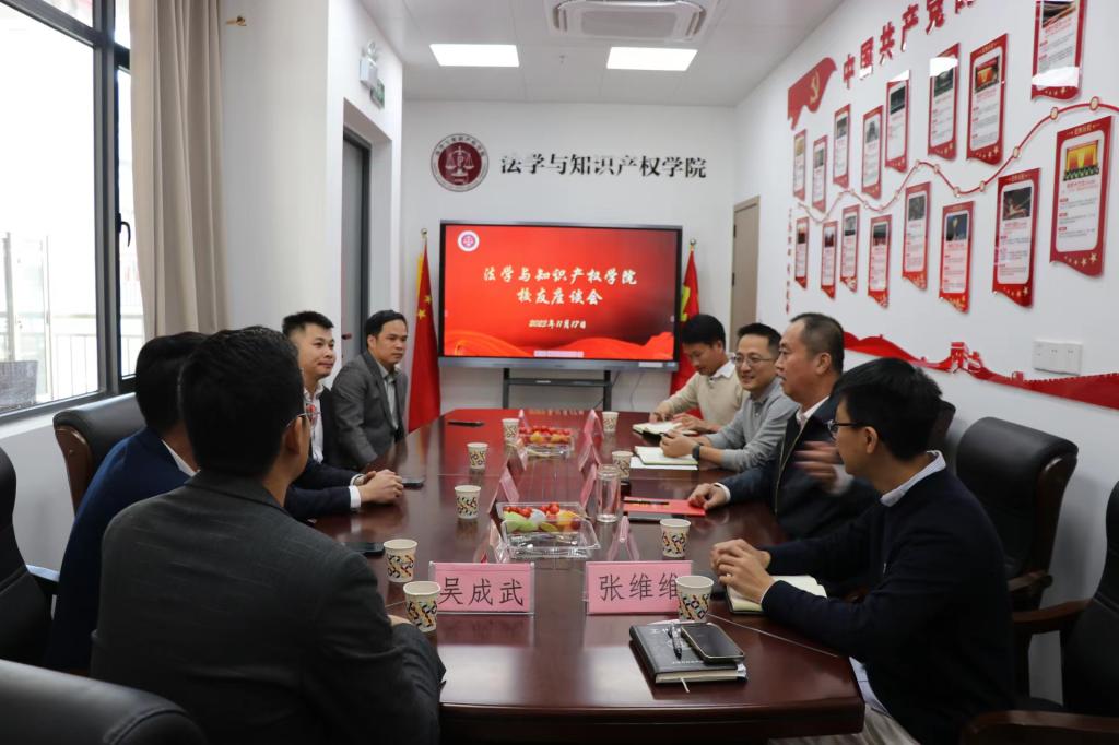 11月17日,我院校友彭世明(广东盈隆律师事务所)、麦荣福(广东盈隆律师事务所)、蓝伟平(广东都汇律师事务所)、王清(广东品杰律师事务所)、吴成武(广东盈隆律师事务所)等一行5人返回母校进行访企拓岗座谈交流。学院党委书记许建鑫、副书记李雪斌,辅导员梁嘉乐、张维维、伍龙妙以及2024届毕业生代表参会。