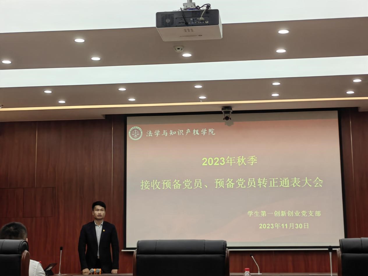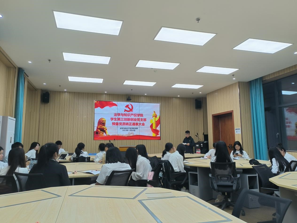学习贯彻习近平新时代中国特色社会主义思想和党的二十大精神,加强组织建设,严格规范党员的发展、教育和管理,不断增强支部的凝聚力和战斗力,11月30日,我院学生第一创新创业党支部、学生第二创新创业党支部、学生第三创新创业党支部分别于白云校区第三实训303、304、305室召开2023年秋季接收预备党员、预备党员转正通表大会,全体学生党员参加会议,会议由支部书记伍龙妙、张维维、梁嘉乐主持。