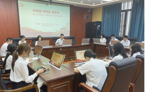 为深入学习贯彻习近平新时代中国特色社会主义思想,认真学习新修订的《中国共产党纪律处分条例》(以下简称《条例》),推动党纪学习教育走深走实,5月12日,我院学生第一创新创业党支部、学生第二创新创业党支部、学生第三创新创业党支部先后于白云校区第三实训楼303室开展《学条例 守党纪 强党性》党纪学习教育专题党课,支部书记伍龙妙、梁嘉乐讲授专题党课,全体学生党员参加学习。